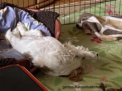 Meine Zieheltern, Nicole und Thomas Gems, haben uns mit sehr viel Liebe, Sorgfalt und Zuneigung den Start in unser Hundeleben erleichtert.